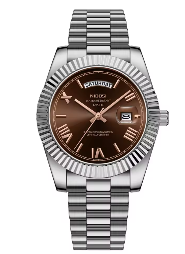 Inspirado en el icónico diseño Datejust, presentamos el NIJUST. Un reloj de 39 mm de alta calidad que combina elegancia, precisión y accesibilidad, ideal tanto para el uso diario como para ocasiones especiales.
